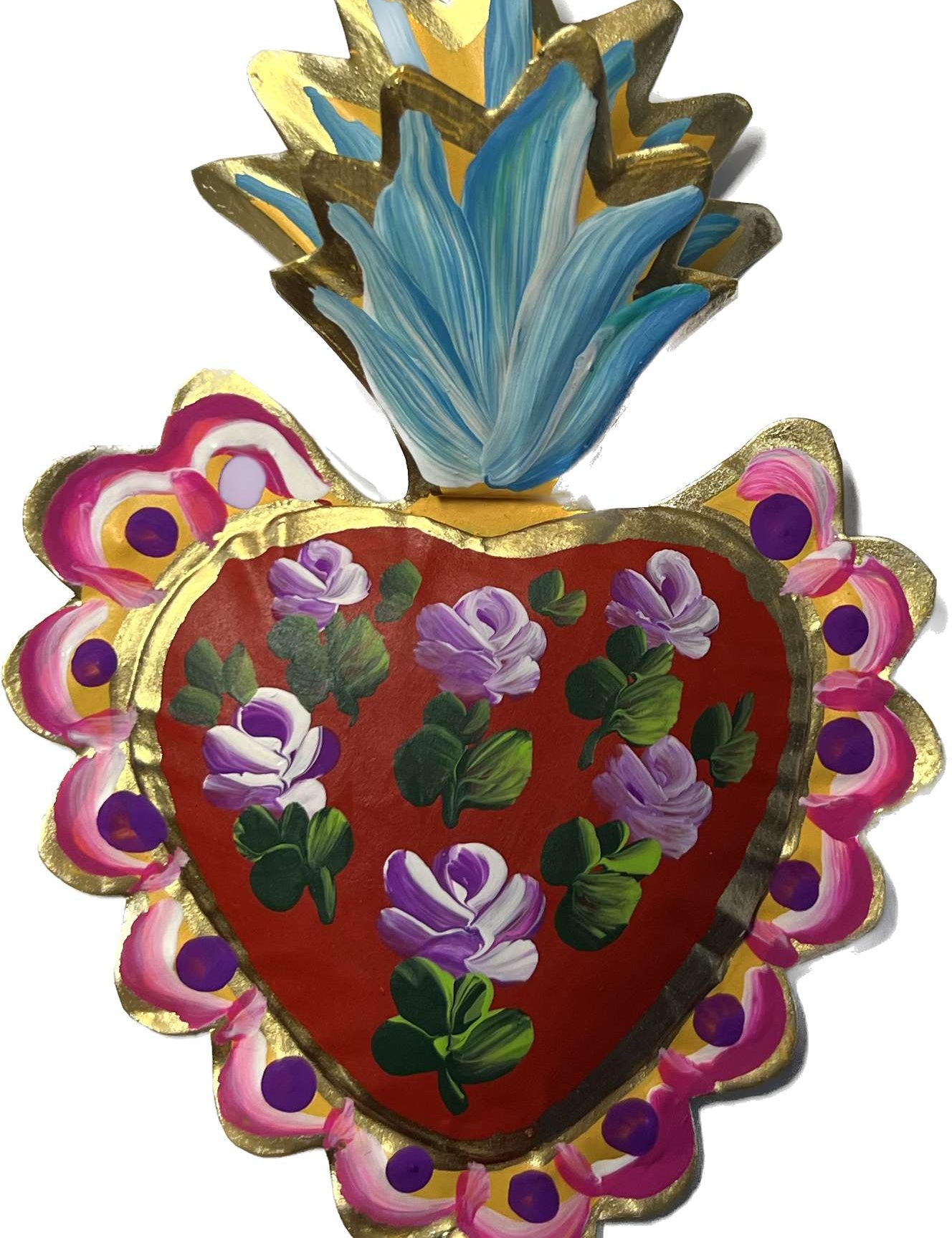 Mexican Dark Heart with Bordering Gold Tin Roses