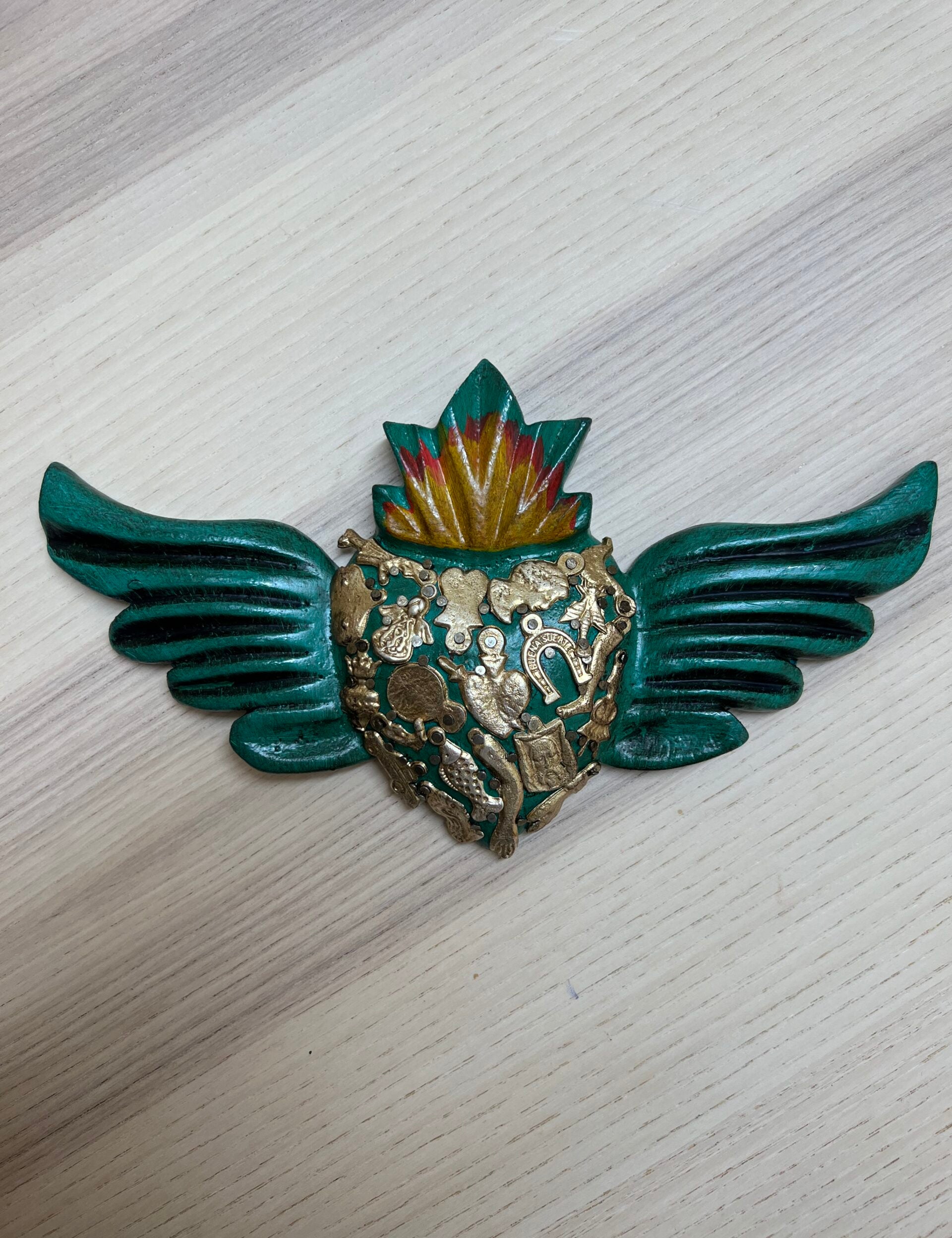 Mexican Heart with Miracle Milagros and Wings