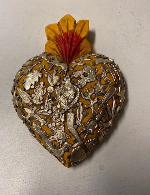 Mexican Large Yellow Heart with Milagros