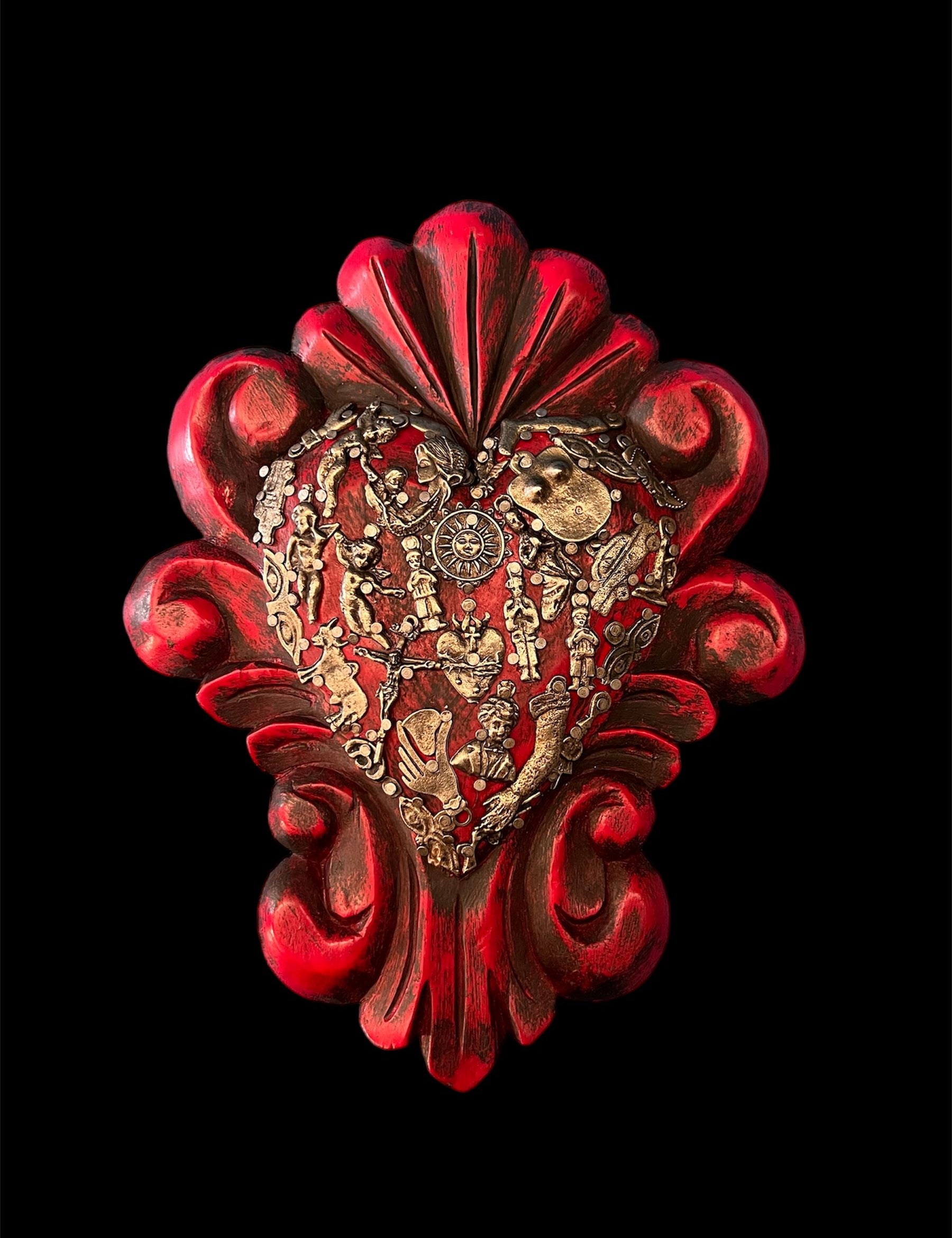 Mexican Red Heart with Gold Flowers