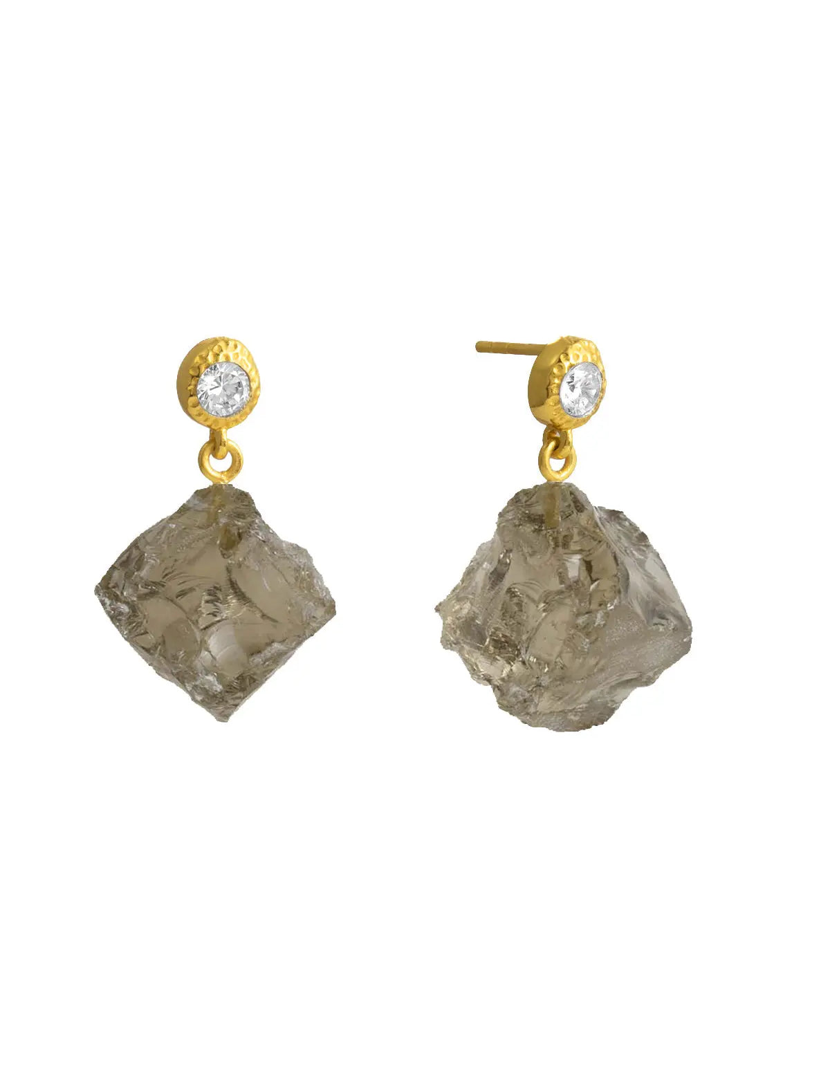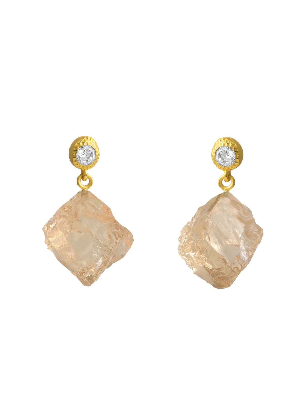 Euro Gold Gemstone Drop Earrings - Moonstone