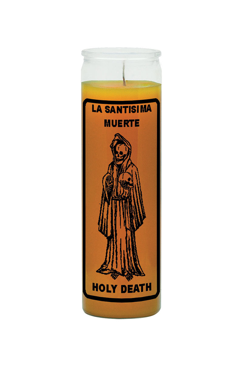 According to folklore, the burning of the Holy Death Candle is associated with healing, protection, and safe delivery to the afterlife by her devotees.