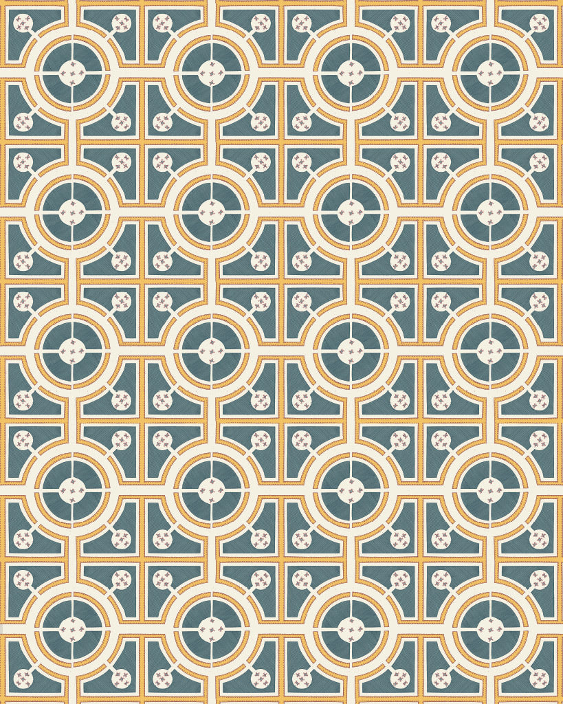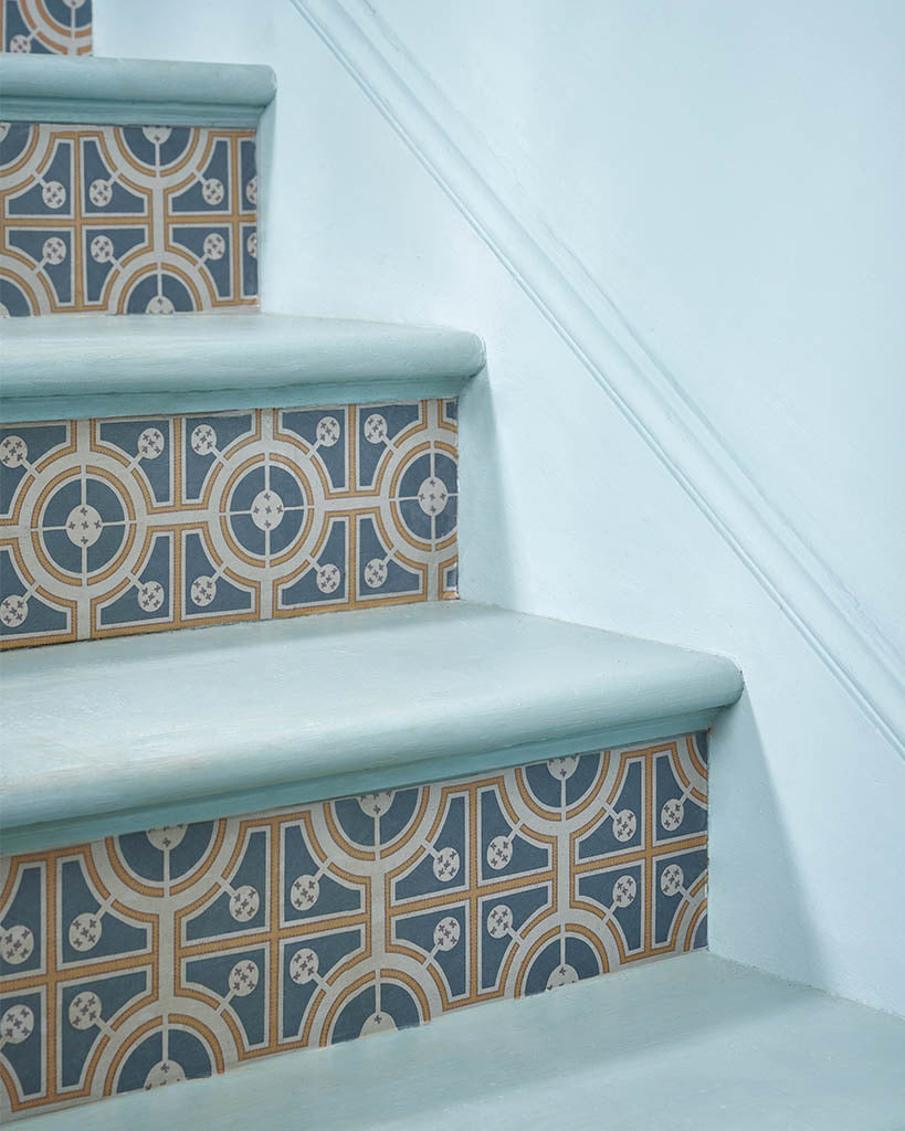 Roundabouts is adapted from an engraved illustration of a design for a knot garden. This Annie Sloan with the Royal Horticultural Society (RHS) Decoupage Paper uses a garden plan from Stephen Blake: “The Compleat Gardeners Practice”. London: 1664. Printed for Thomas Pierrepoint.  This bold circle and square design uses Aubusson Blue (available in Chalk Paint™ and Annie Sloan Wall Paint) and Chalk Paint™ in Tilton, a colourway reminiscent of Portuguese tiles.
