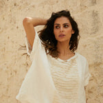 The Luna top is made from a medium weight linen and is a boxy cut. The style is perfect for layering.