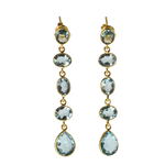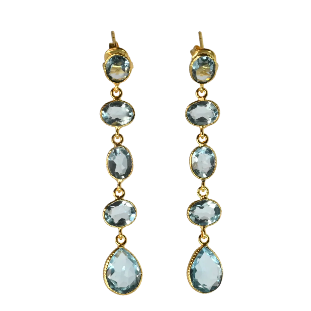 Lovely long elegant drops, with gems that add a pop of colour to the brushed gold.