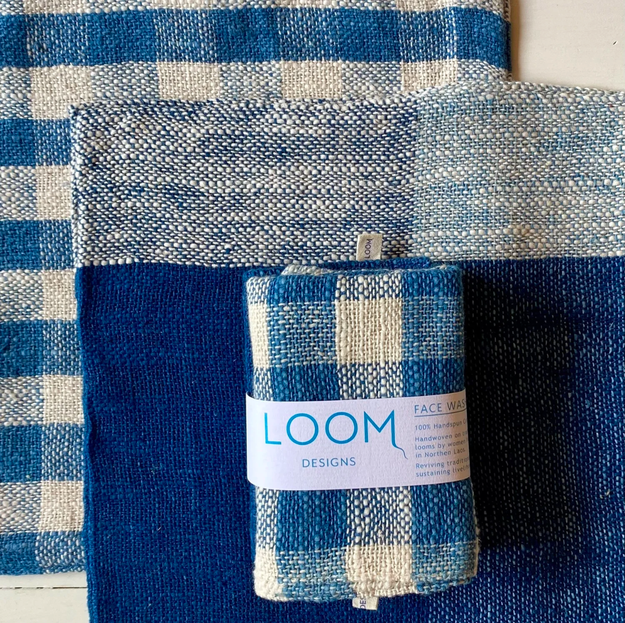 Loom Face Washers 2 Pack Indigo Check/ Indigo on Indigo