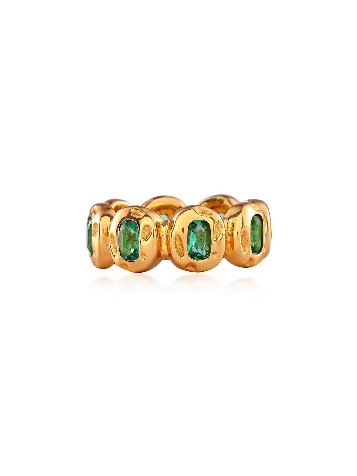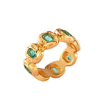 The new Gia ring is formed of a clear or emerald crystals encased in gold. This style is a unique take on a classic modern ring. Made for everyday wear and to mix and match.