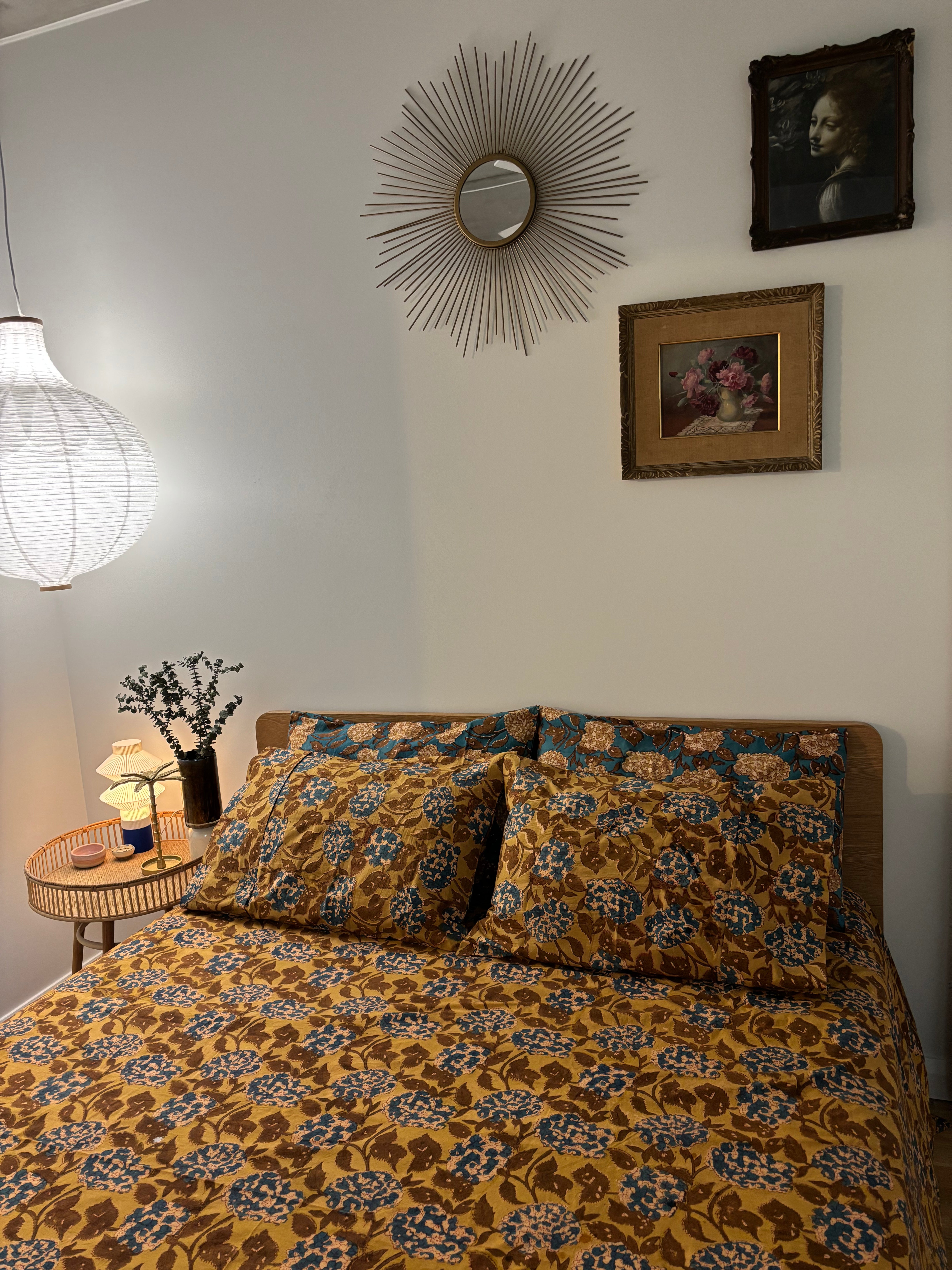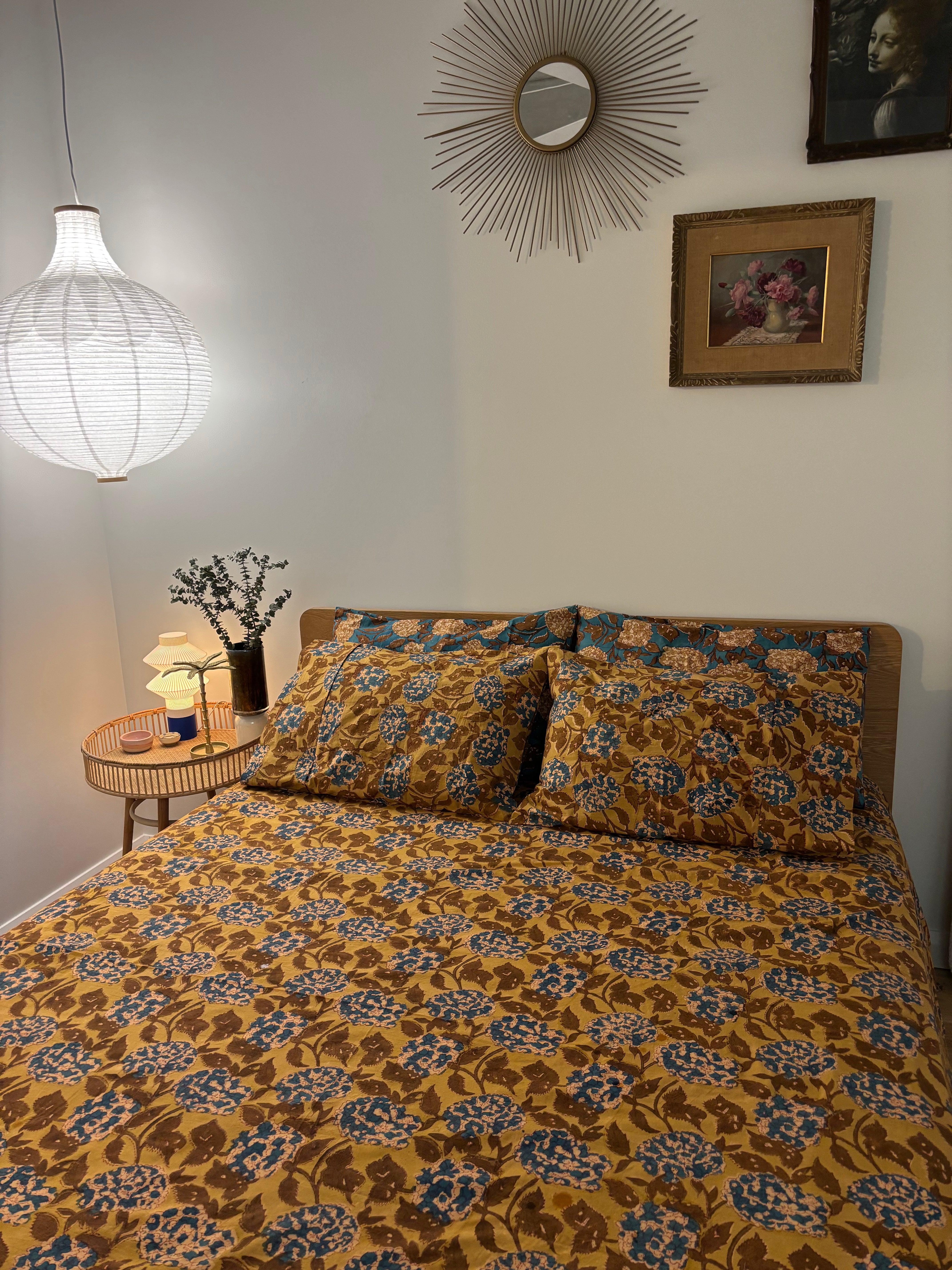 Our prints are a result of skilled artisans who expertly carve wooden blocks and apply them with precision.