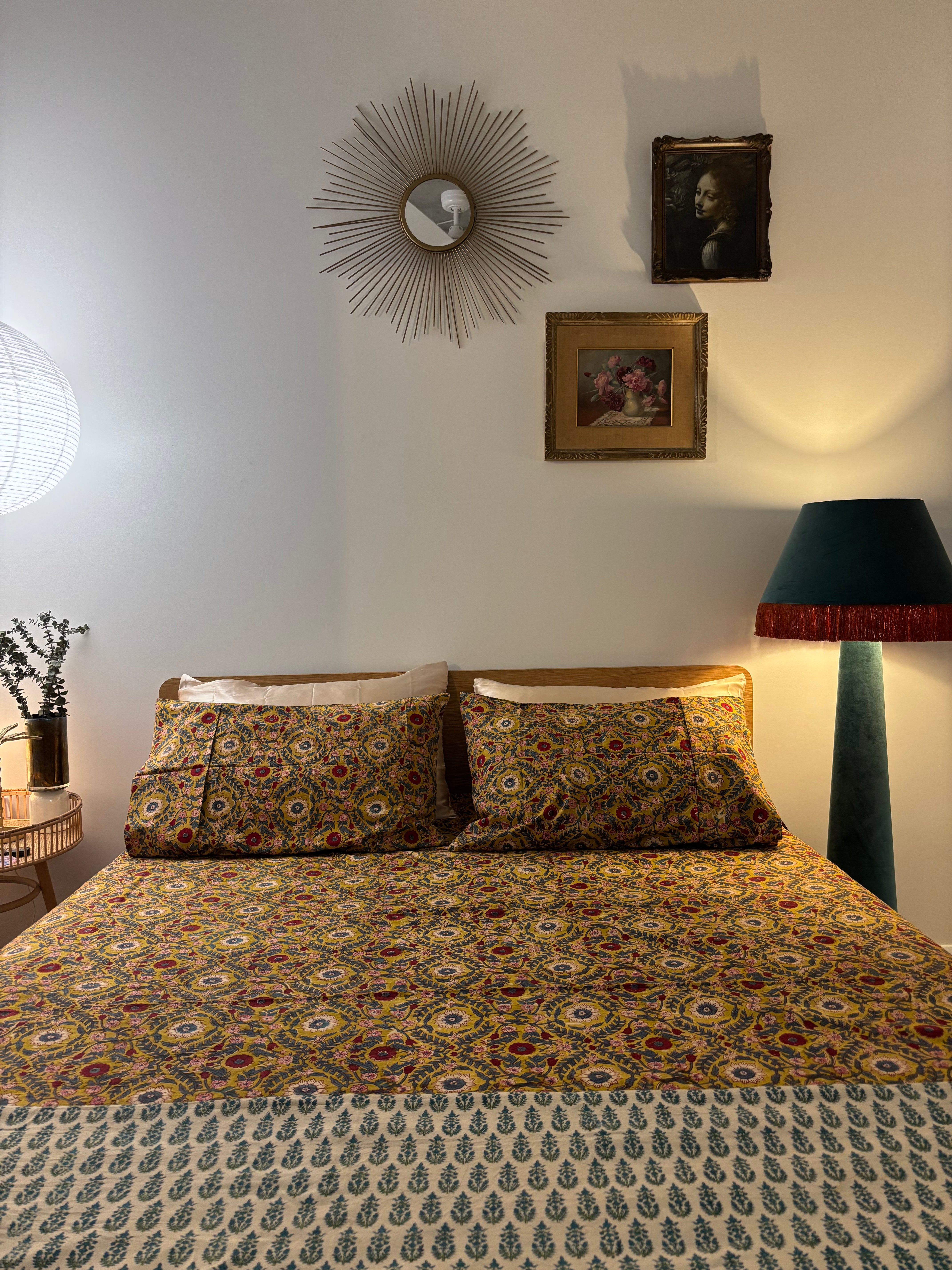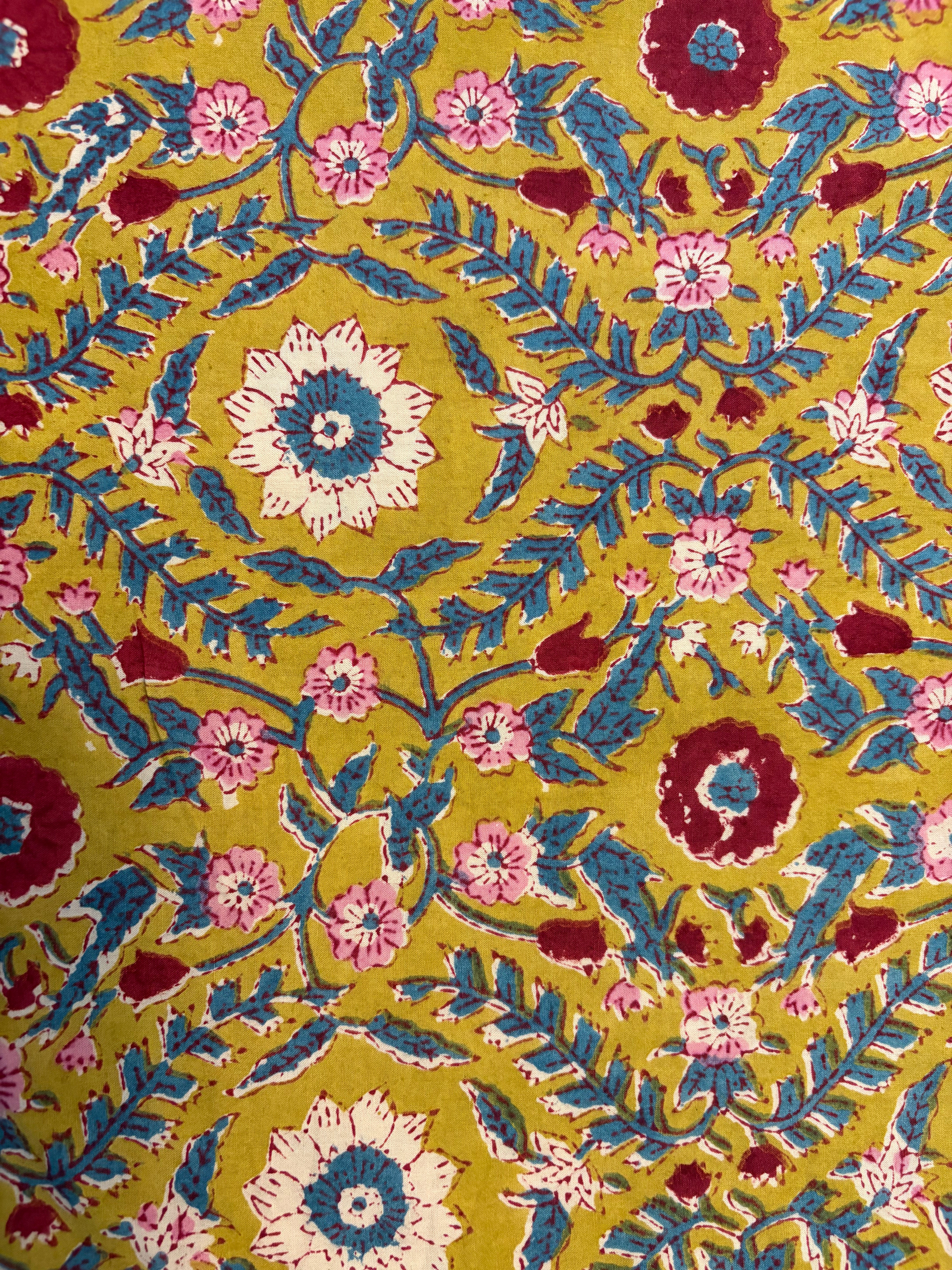 Hand Block Printed Bedding- Mustard and Blue Floral