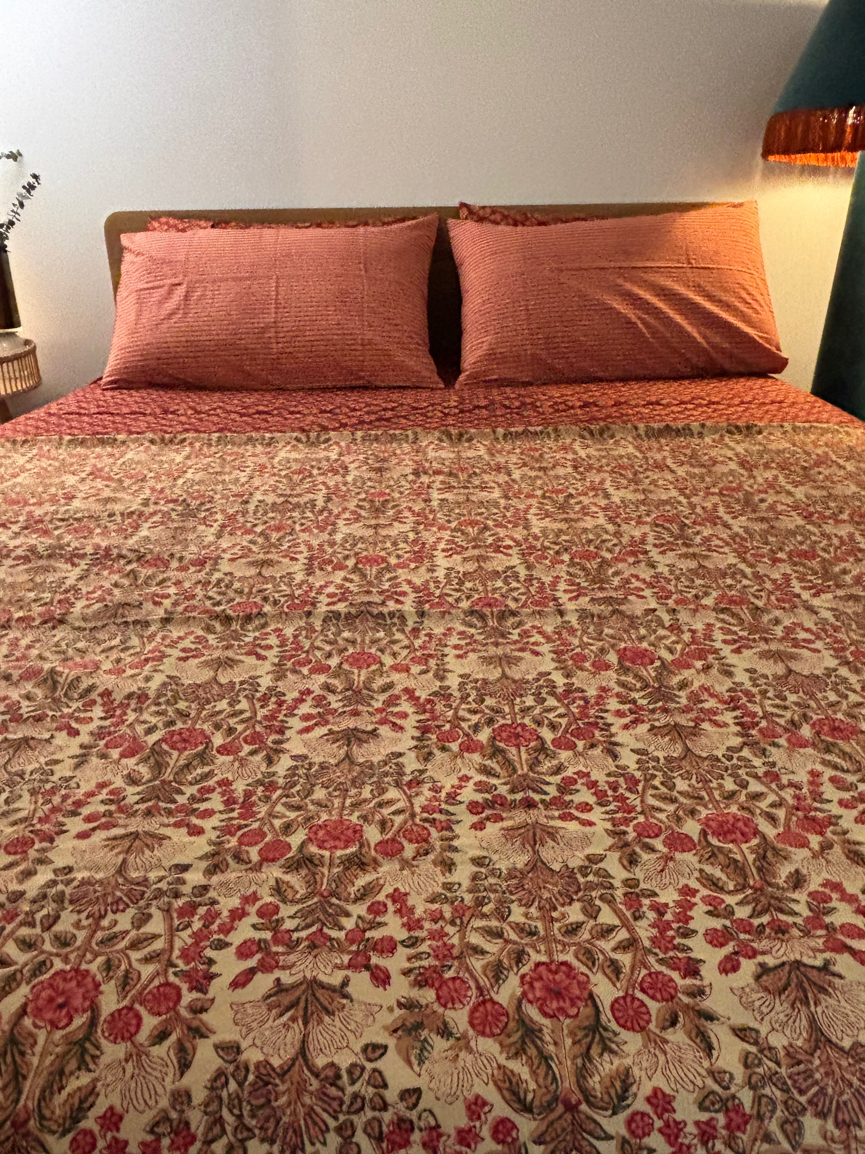 Our prints are a result of skilled artisans who expertly carve wooden blocks and apply them with precision.