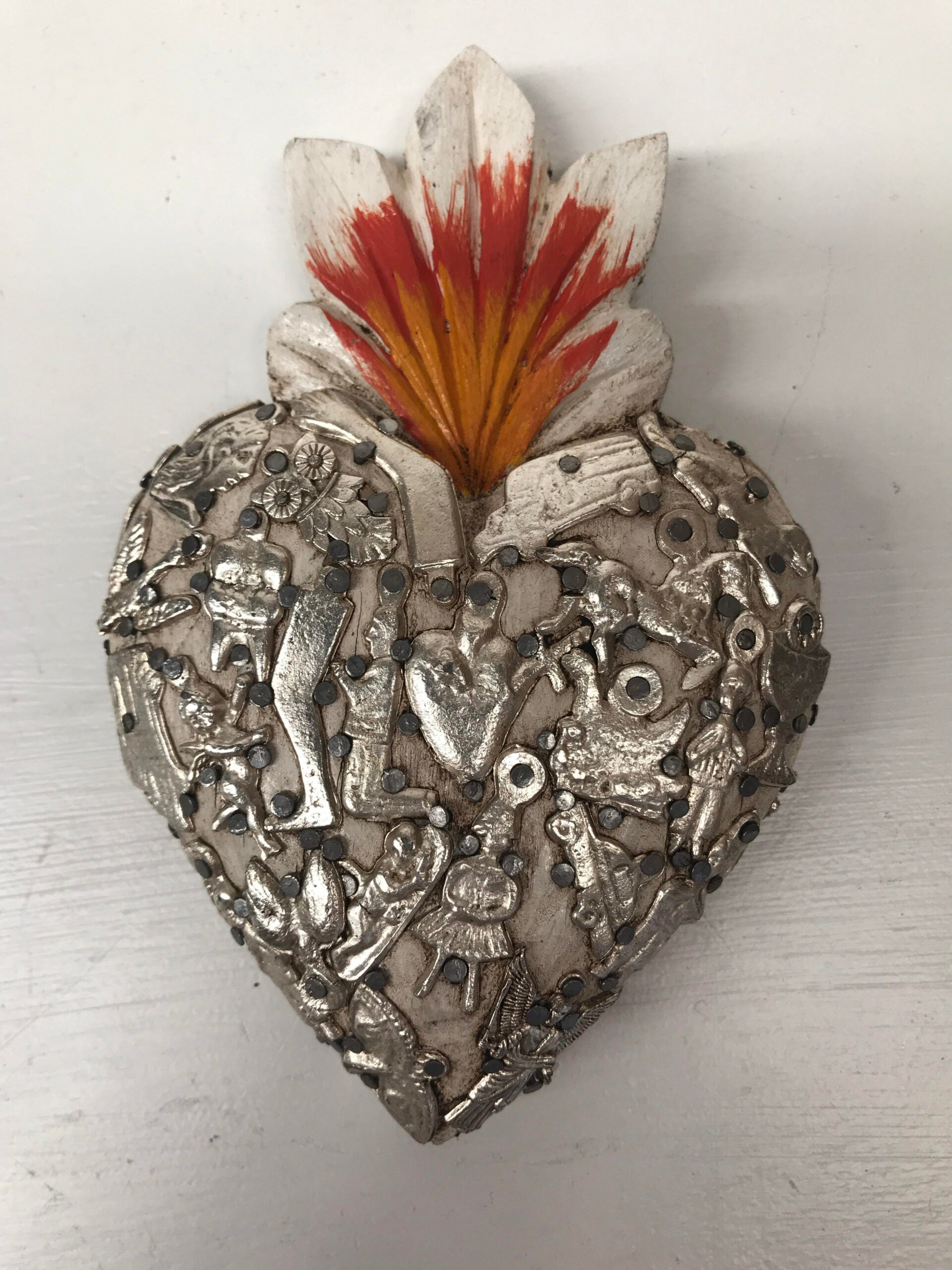 Mexican Heart decorated with milagros.