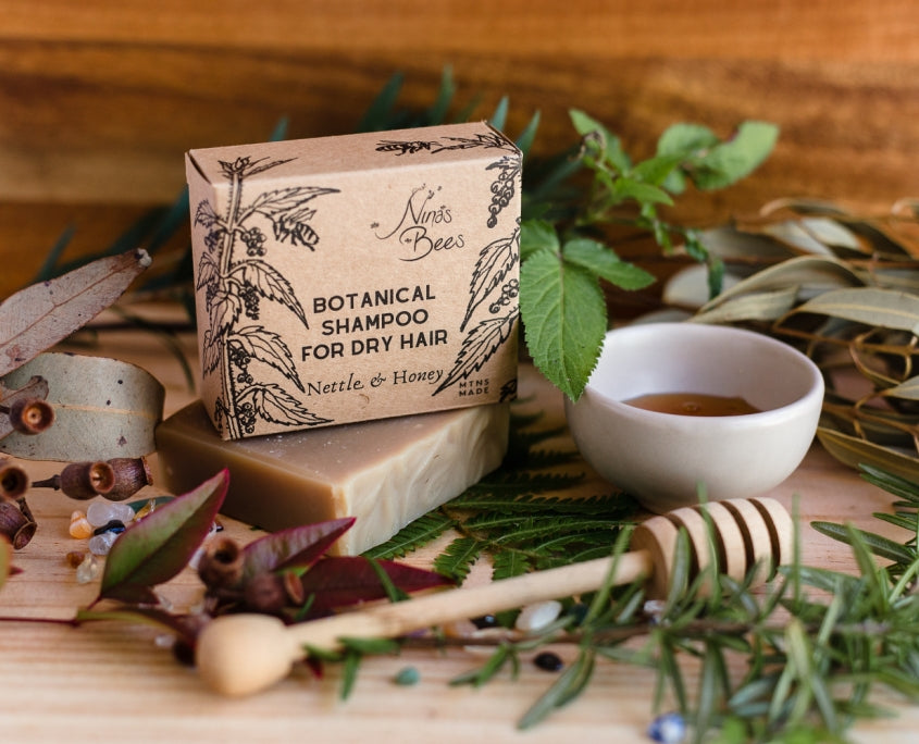 All natural mild solid shampoo bar handcrafted with honey from Nina’s apiary.