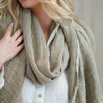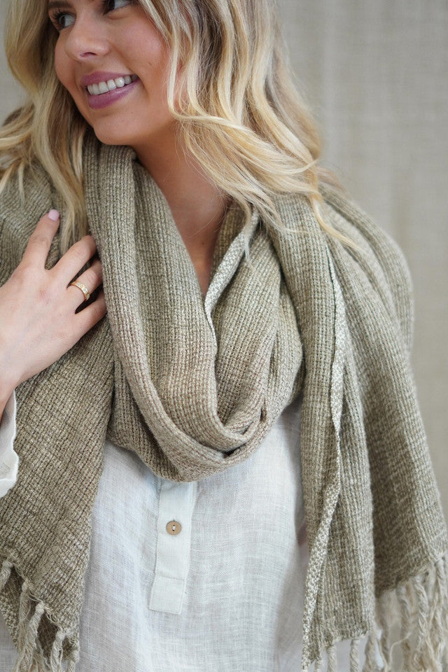 Petra Fringed Scarf 50 x 180 cm | Olive 100% Spaced Luxury Textured Mesh Linen