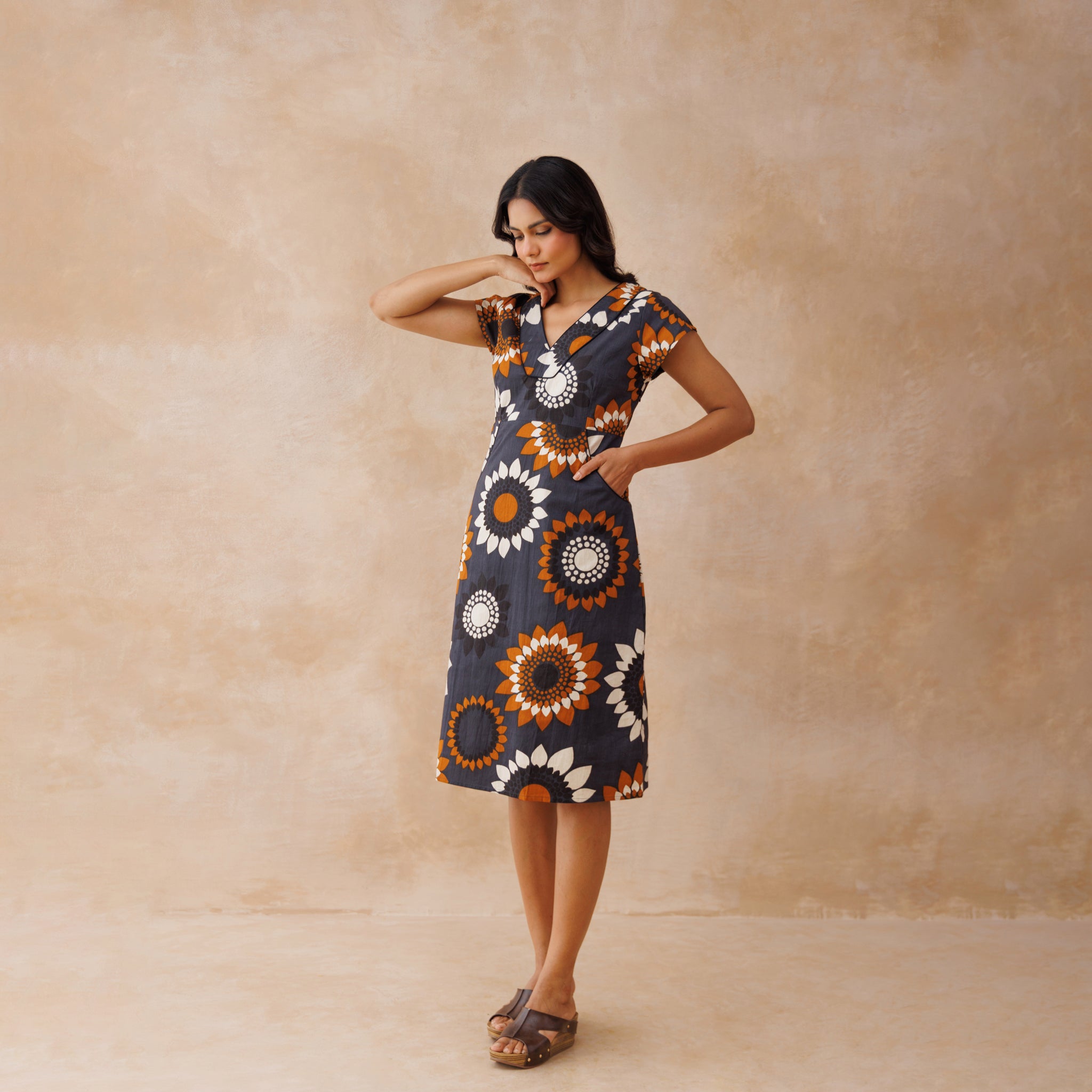 The Ada Dress is crafted from our high-quality cotton poplin, offering both structure and softness in one timeless piece. This classic empire-line silhouette features contrast piping along a flattering V-neckline, easy-wear cap sleeves, and practical side pockets for everyday functionality. A discreet side zip adds extra comfort and ease of wear.