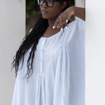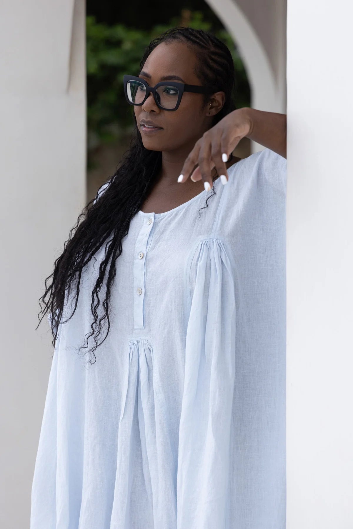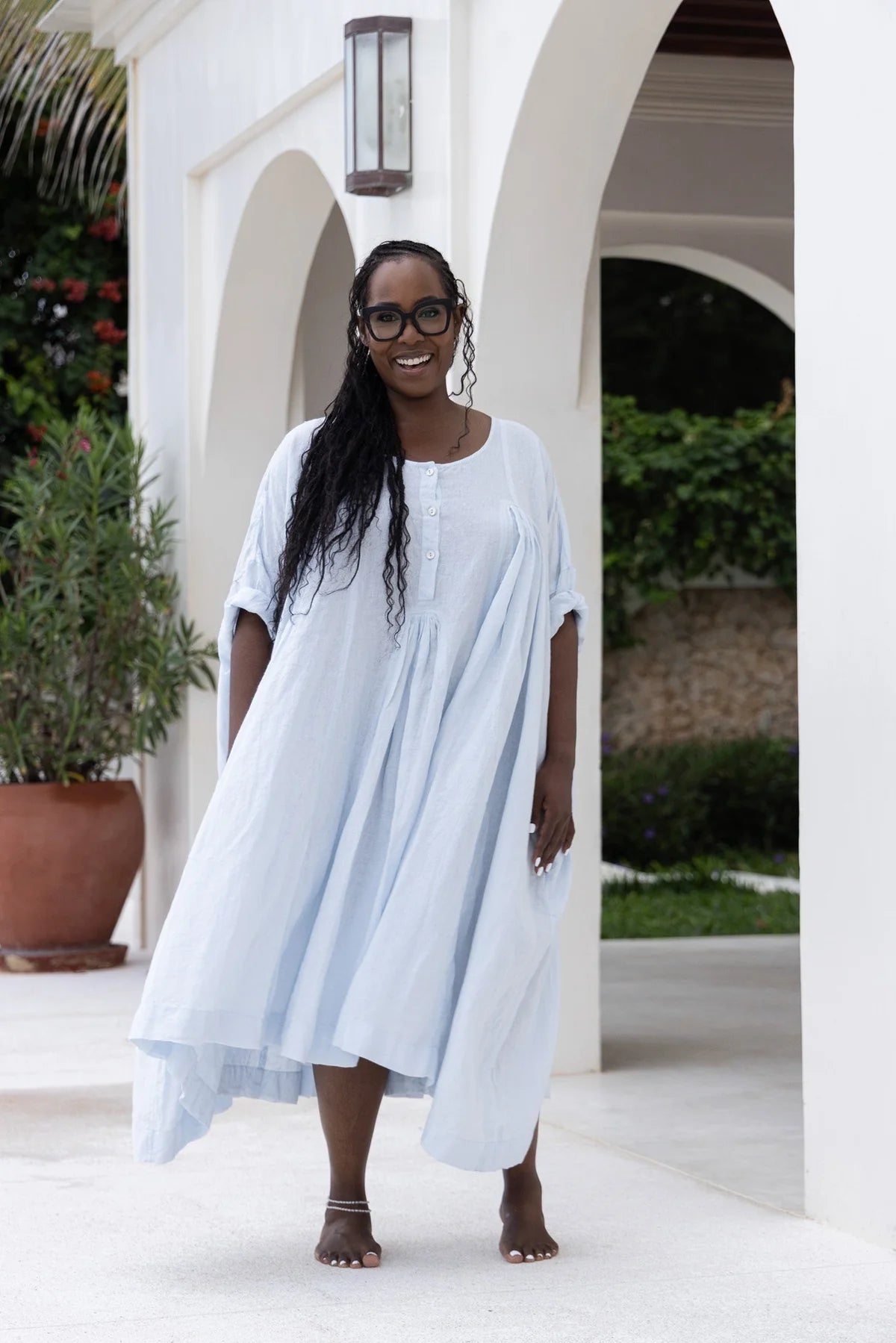 Our Shiva Dress is crafted from a medium-weight linen and designed especially with our plus-size customers in mind. While it flatters all body types, it’s particularly well-suited to apple and pear shapes. Pleating details at the front and back create shape and movement, while the flowing silhouette offers both comfort and understated elegance. An effortless blend of ease and refinement—perfect for everyday wear with a touch of grace.