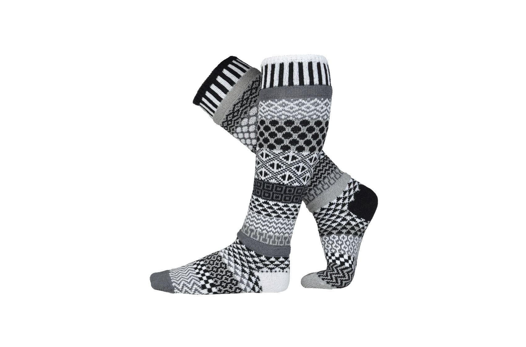 With so much allure and a touch of intrigue, our Midnight Knee Socks are sure to captivate with all of their monochromatic bold and fashionable vibes. As one of our best-selling designs year after year, these socks are pretty mandatory in any awesome sock drawer. Colors in this sock: black, white, silver and pewter. Fits comfortably all calf sizes up to 15".