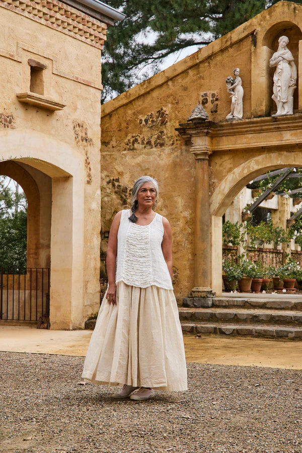 The beloved tutu slips are made from a cotton twill bodice with a textured cotton organdy skirt.