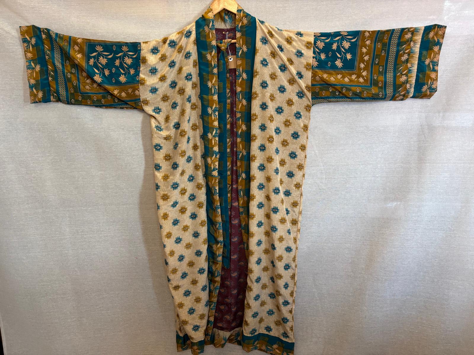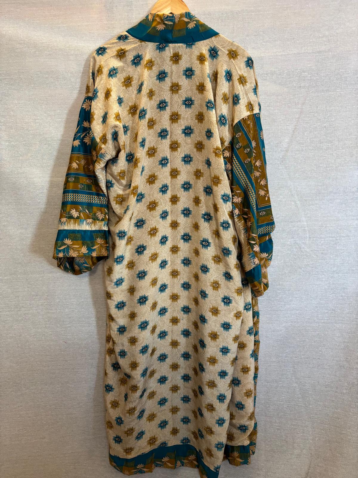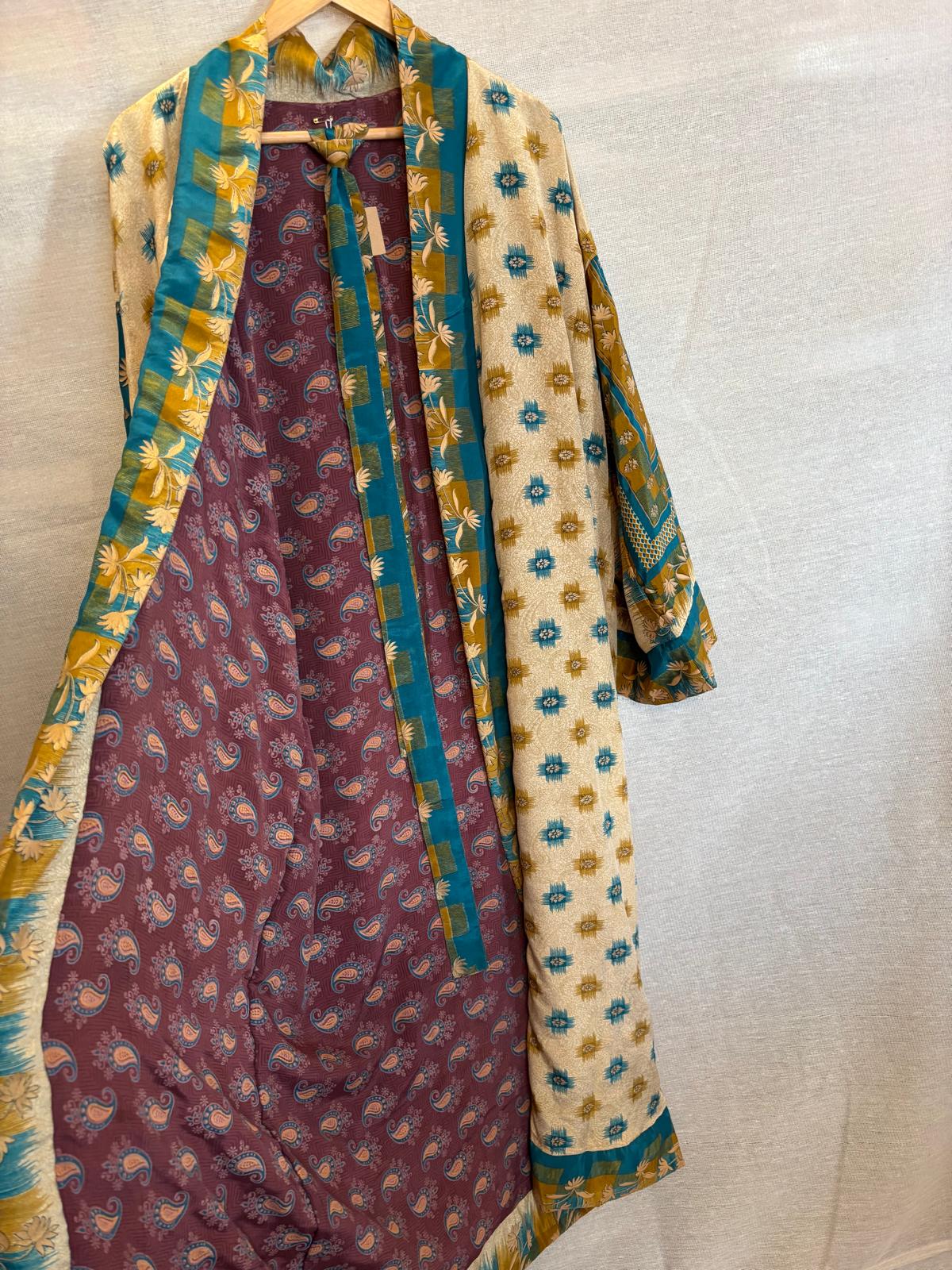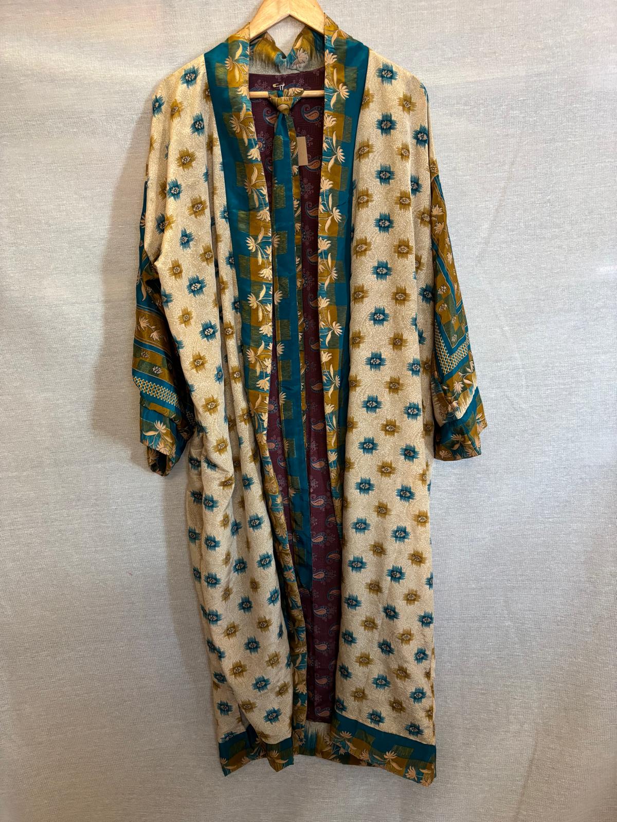 Discover the elegance of our reversible silk sari kimonos, crafted from luxurious vintage silk blend saris. These versatile robes are a stunning addition to your wardrobe, perfect as a stylish kimono or a cozy robe.