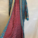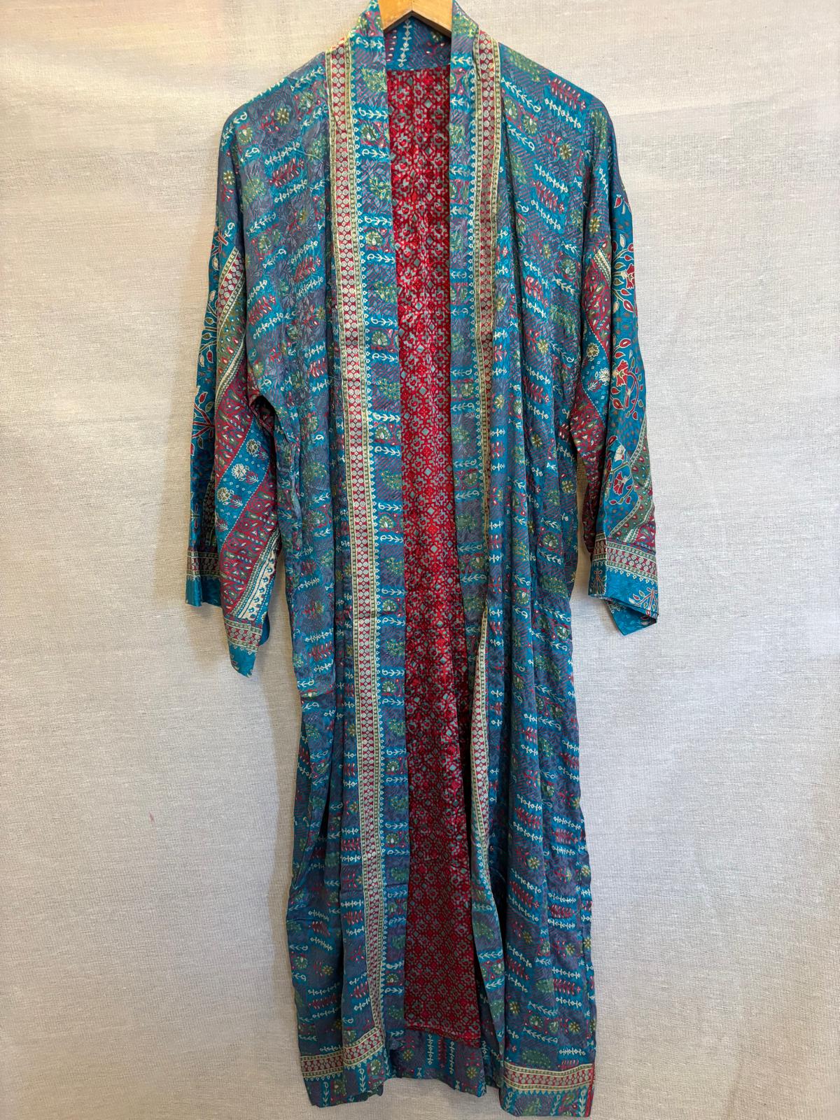 Discover the elegance of our reversible silk sari kimonos, crafted from luxurious vintage silk blend saris. These versatile robes are a stunning addition to your wardrobe, perfect as a stylish kimono or a cozy robe.