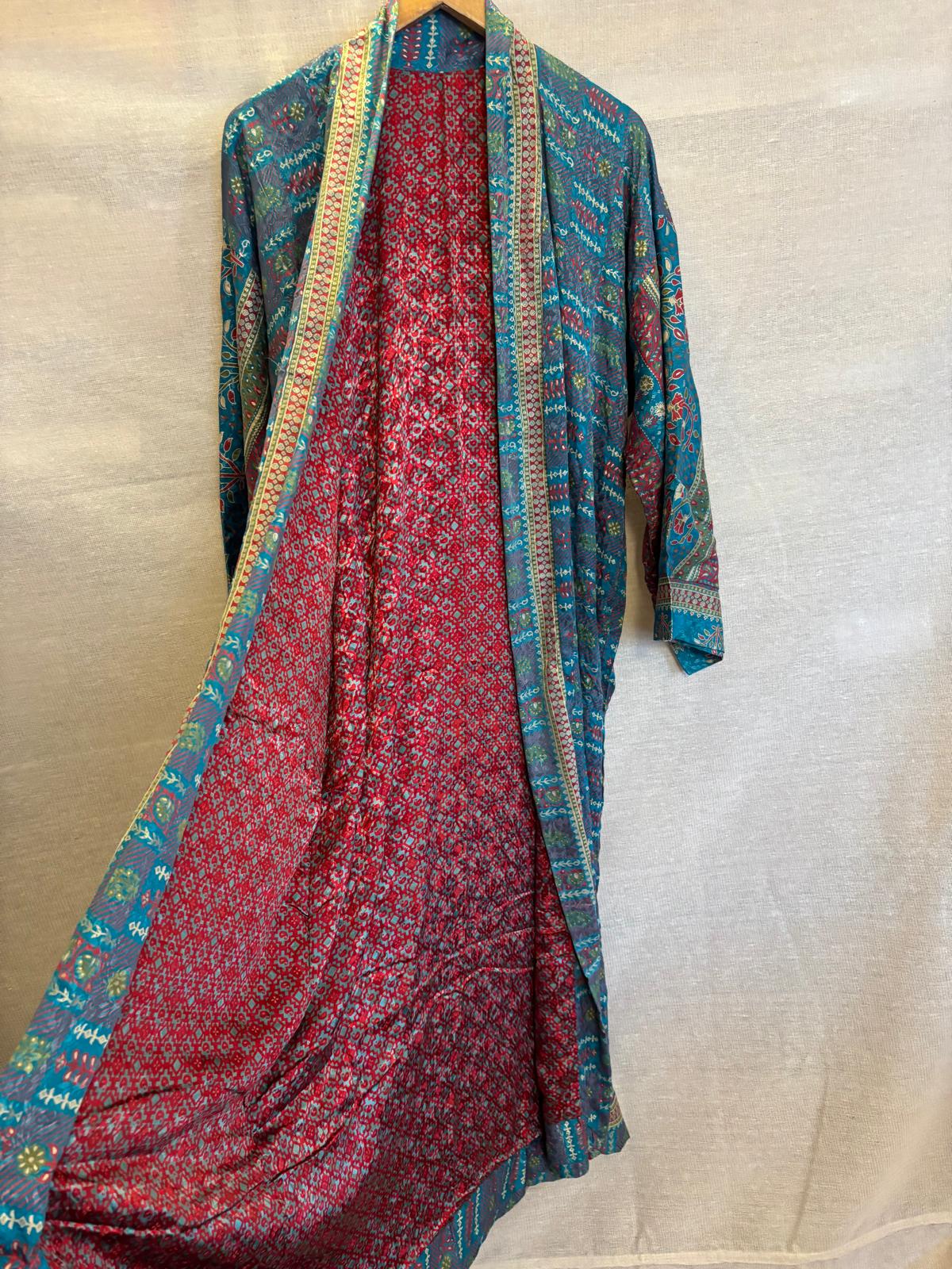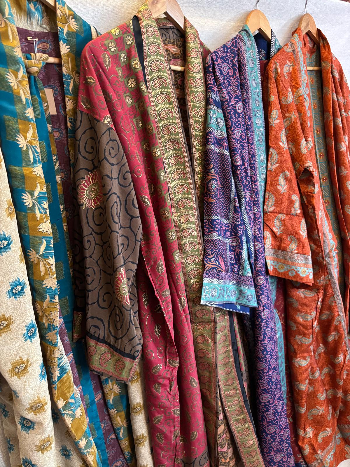Ethically made in India from up-cycled silk blend sarees, these kimonos embody both luxury and eco-conscious craftsmanship.